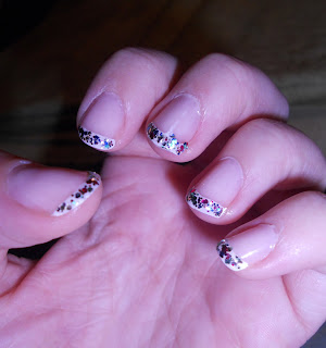 Afterwards I painted over the white tips with a glittery polish. Just to spruce things up. Ta Dah!