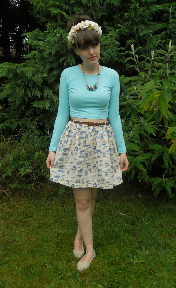 To me Tea Parties connote ideas of vintage, pastel colours and little twee additions. I’m not gonna lie, every time a Tea Party is now mentioned I can’t help but think of the new Rimmel Stay Power foundation. All the pretty colourings, cake all over the place and Georgia May Jagger. Of course it was unlikely she was actually going to turn up, but you never know one Tea Party she might do! I based my outfit around paler colour tones to try and pretend it was a lovely end of summer day, with a cool breeze and a warm sun. But who was I kidding? It was absolutely pissing it down so we ‘whooped it up‘(nice one Synonym Suggester on Word) in the kitchen. I wanted to road test my new skirt to I wore this with a belt of my own, because as you can image the Size 20 belt it came with didn’t fit me so well! I think the belt is a nice change of colour in the pronominally blue outfit. I added my Aqua Blue Cropped Long Sleeve top to the look, since I wanted something long sleeved and warm. It’s a nice bolder colour addition I think. I went with silver jewellery as the necklace had the correct tones of blue to co-ordinate with the top. Lots of people like my Floral Headband/Crown so I popped that on in front of a sock bun. With my hair down I felt I looked a little short and it didn’t really work. I think it might have been because my hair is such a dark addition to the paler colour pallet I was working.