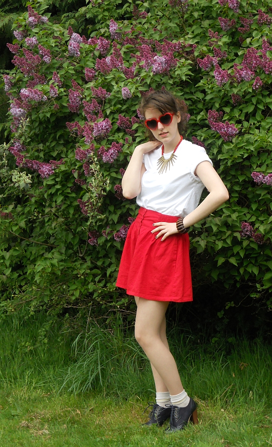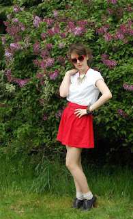 I think that the cornmeal colouring of the socks actually works better that a pair of bright white socks, as they blend better with my actual leg colour. By wearing the socks with the hoes it gives a more school-girly vibe.