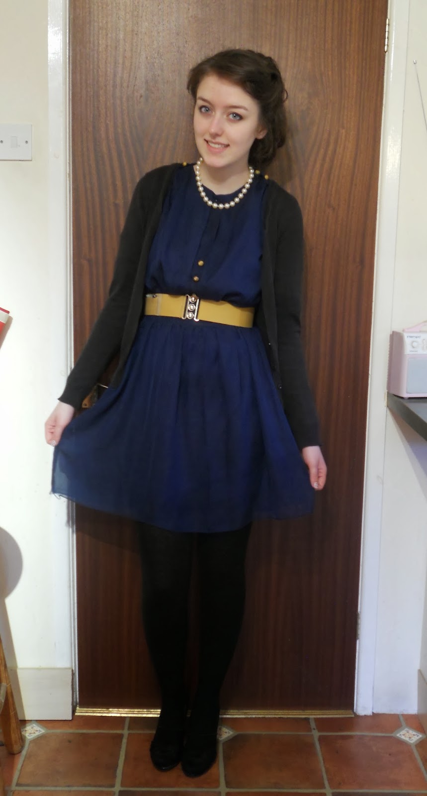 When I first discusses what WWII wear would have been like, the teacher said anything below the knee. And instantly the slutty realisation that, actually, I don’t own anything that finishes brow my knees apart from trousers. So I raided my sisters wardrobe, but that was pretty unsuccessful as well. But she did have this nice dress which I thought looked plausible- Bearing in my my historic education appears to be the one area the education system let me down in.