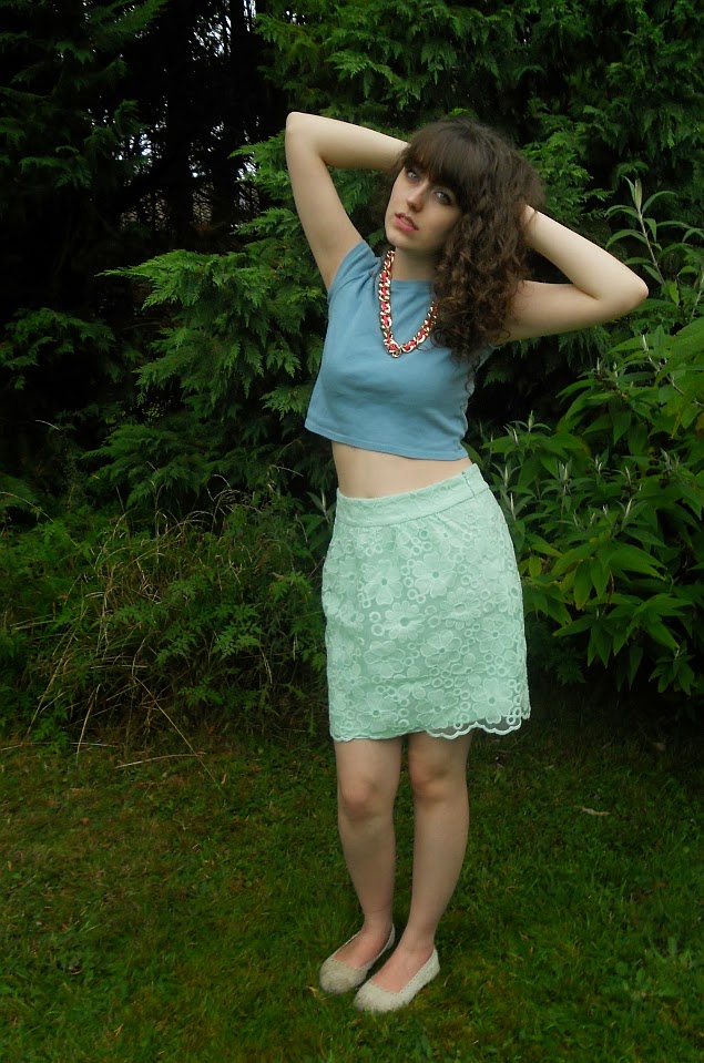 I wore tobacco chinos and my white neon striped jumper from Kylie. But had it have been a nice day/ I had got a lift I’d have gone with this little number. I really wanted to wear this lace design skirt because I bought it when I went shopping with my friend and I wanted to show her what it looked like on without a pair of trousers on underneath. I bought the skirt from the shop Republic in town since it was the last day of the closing down sale. It’s so similar to some of the Louis Vuitton S/S 2012 pieces. Remember when they had the pretty floral lace pieces in an array of pastel colours? #alltimefavecollectionEVER!